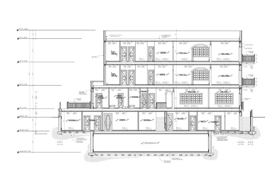 Our sections are filled with critical details that allow us to check the viability of our design elements and to convey important information to the general contractor and the construction team. They also provide a glance into the beautiful interiors so that the final design can be visualized more clearly.